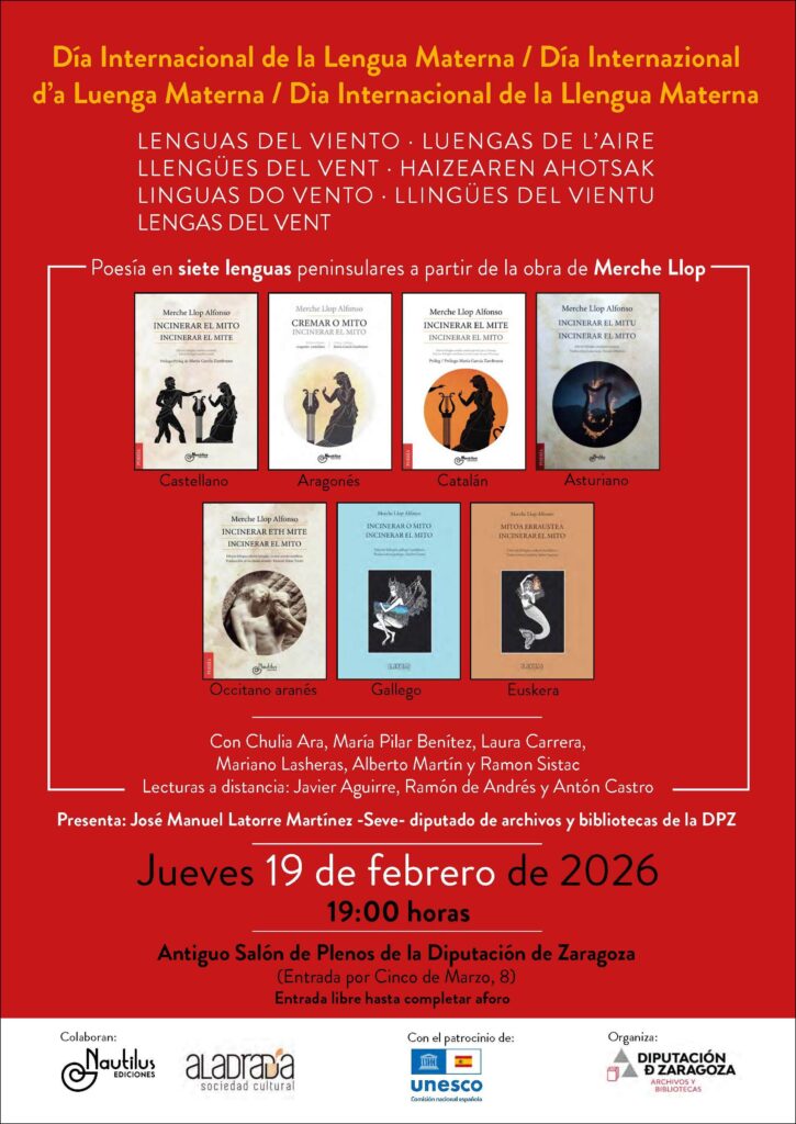 El jueves 19 de febrero, el antiguo salón de plenos de la DPZ acogerá un singular encuentro músico-poético, en torno a la obra Incinerar el mito, de la escritora de Nonasp/Nonaspe Merche Llop.