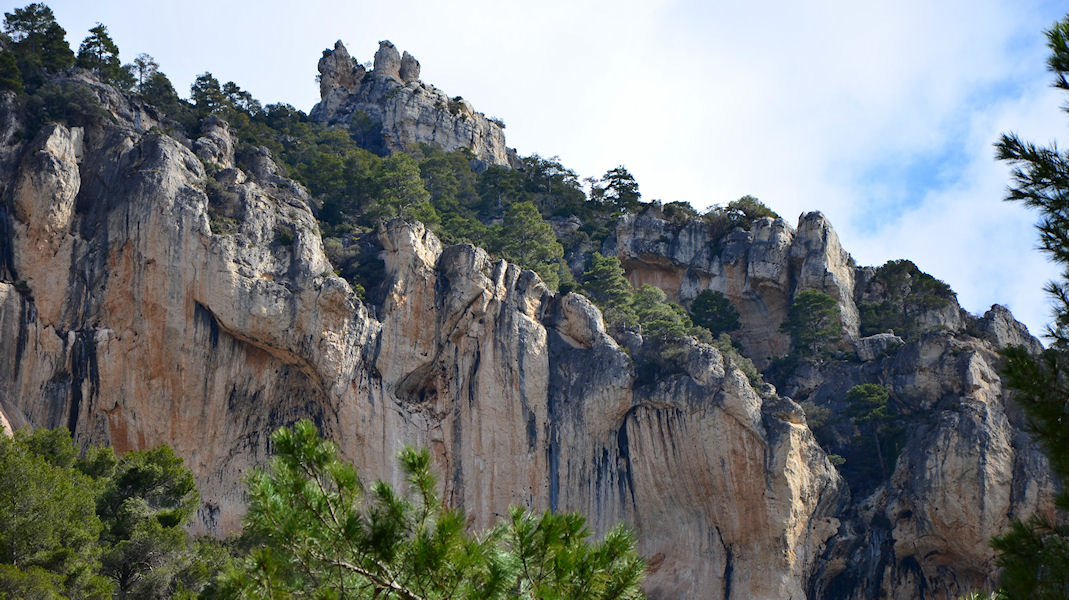 Proseguimos el recorrido por un paisaje cada vez más abrupto con paredes interesantes, de único aspecto, de materiales conglomerados