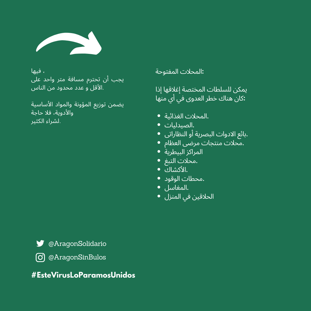 Cada vegada són més les indicacions de el Govern d’Aragó, a través del seu portal de el Servei d’Immigració o de l’Institut Aragonès d’Ocupació que, amb el ajuda dels Fons Estructurals d’Inversió Europeus, tradueixen les seves indicacions en diversos idiomes. Només la ja traduïda en setmanes anteriors sobre pautes higienicosanitàries vam poder veure-la en un petit format trilingüe (castellà-aragonès-català).