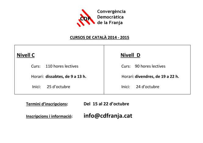 INSCRIPCIONS: DEL 15 AL 22 D’OCTUBRE. Podeu formalitzar la inscripció responent aquest mateix correu electrònic (info(arrova)cdfranja.cat).
