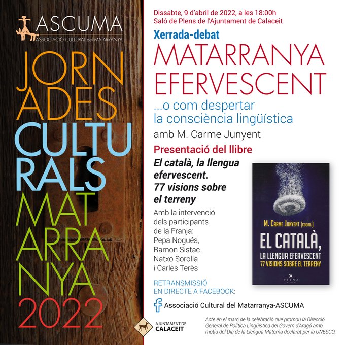 Xerrada-debat MATARRANYA EFERVESCENT …o com despertar la consciència lingüística. Amb @CarmeJunyent, @natxosorolla, #PepaNogués, #RamonSistac i un servidor.